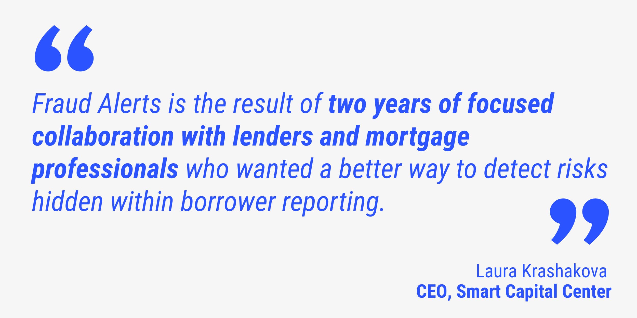 “Fraud Alerts is the result of two years of focused collaboration with lenders and mortgage professionals who wanted a better way to detect risks hidden within borrower reporting. Through continuous feedback, testing, and real-world use cases, we developed an AI capability specifically built for CRE finance, combining financial analysis, document intelligence, and underwriting workflows into a unified risk detection system,” said Laura Krashakova, CEO of Smart Capital Center.